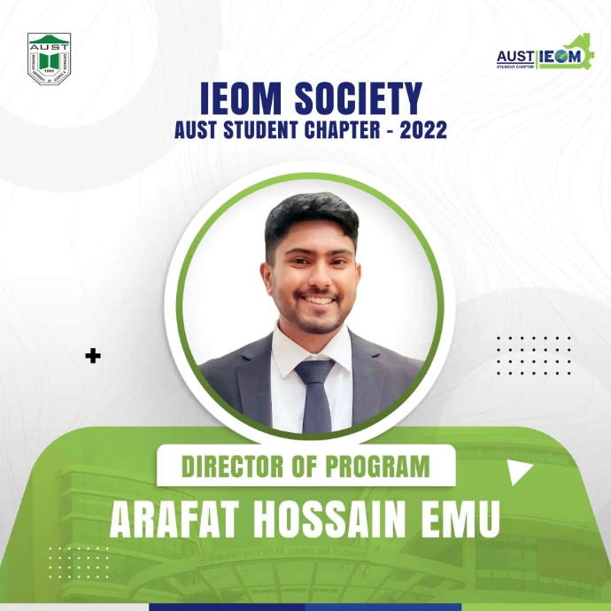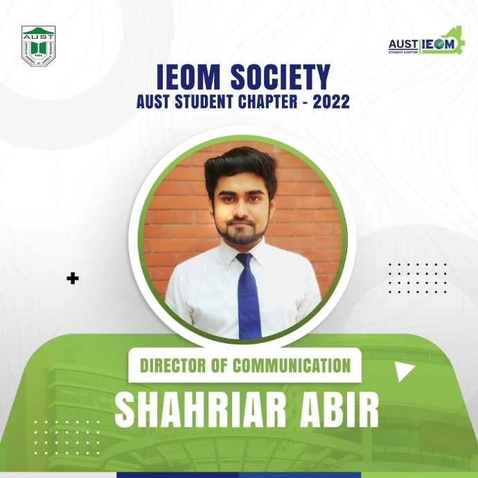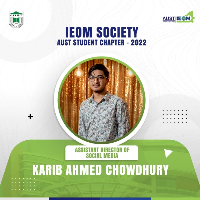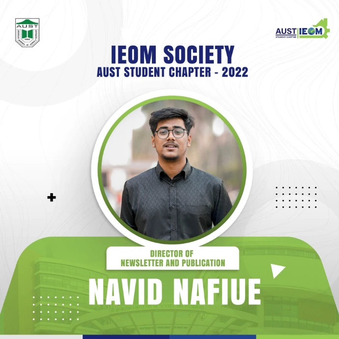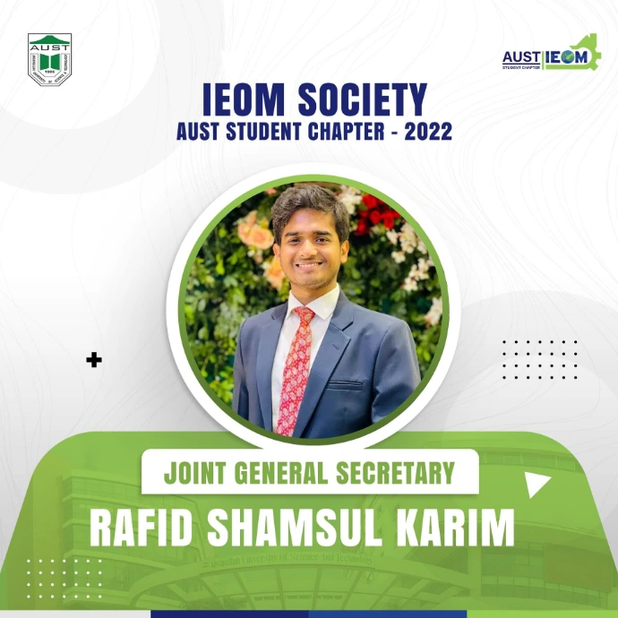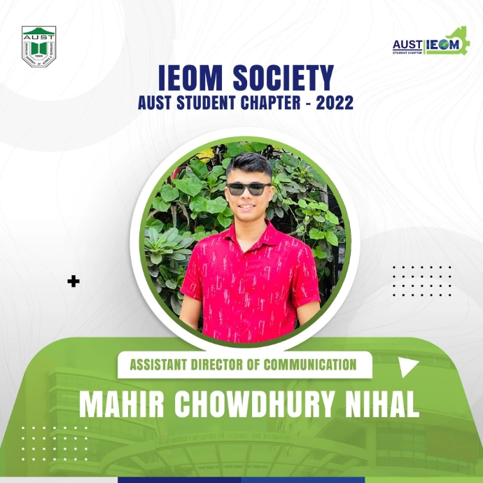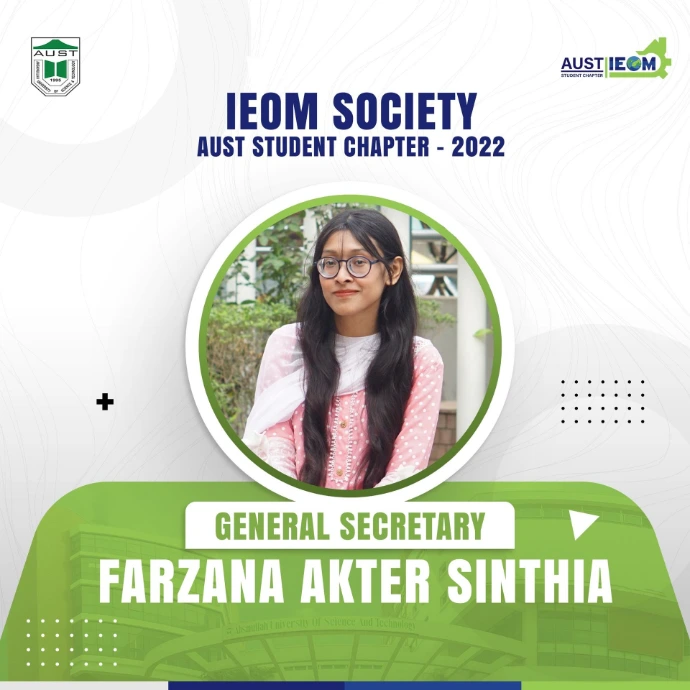 The wait is over!It's time for the ultimate unveiling you all have been waiting for! IEOM Society AUST Student Chapter is delighted to introduce the new Panel Members for the Fall-21 session.These talented and hard-working individuals are ready to take up the roles of leading this society. They will surely be looking to set a benchmark even higher than before and take the IEOM Society AUST Student Chapter to a greater level.Let's welcome and congratulate the new panel members. We wish them all the very best for an eventful 2022 ahead!