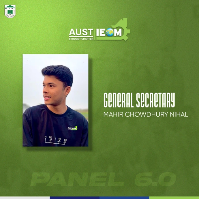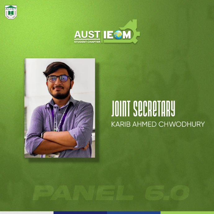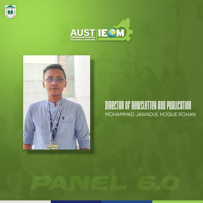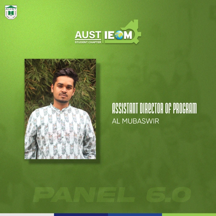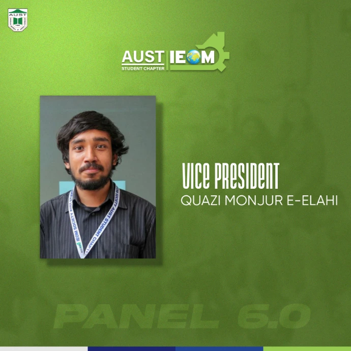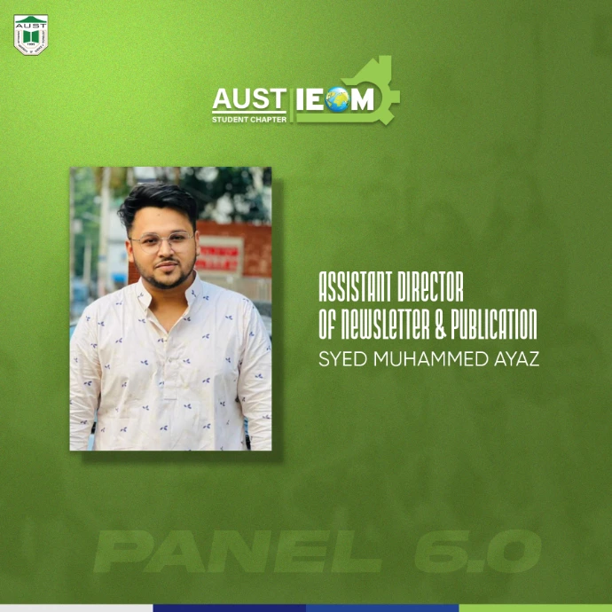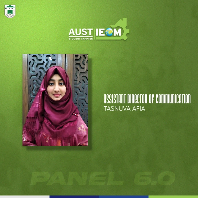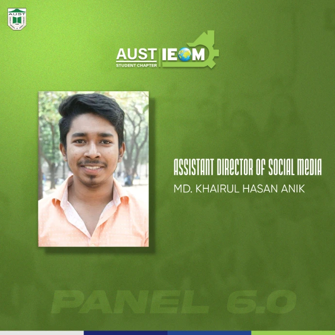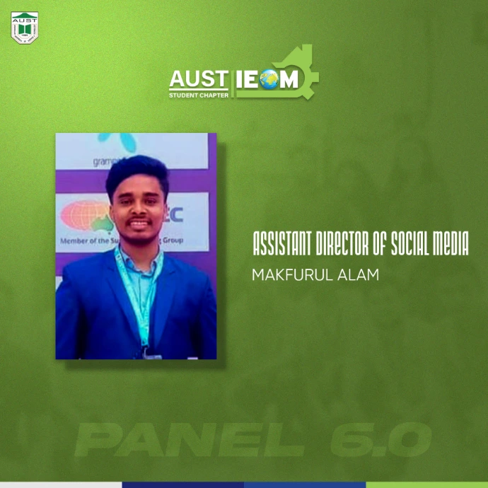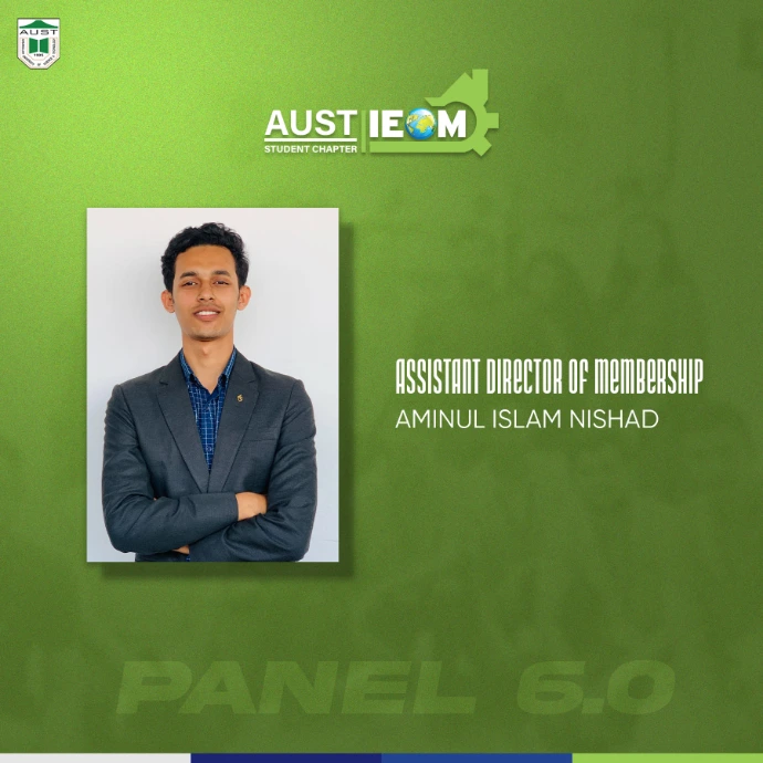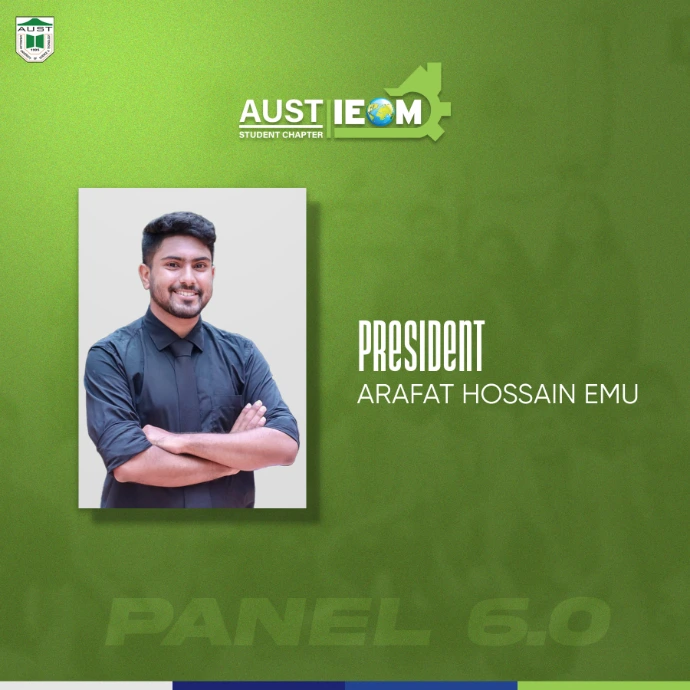 IEOM Society AUST Student Chapter introduces you to some new faces with some old faces- The best of IPE. Congratulations to the newly recruits.With their abilities and talents combined, IEOM Society AUST Student Chapter will reach to a new height.Presenting to everyone, Panel 6.0