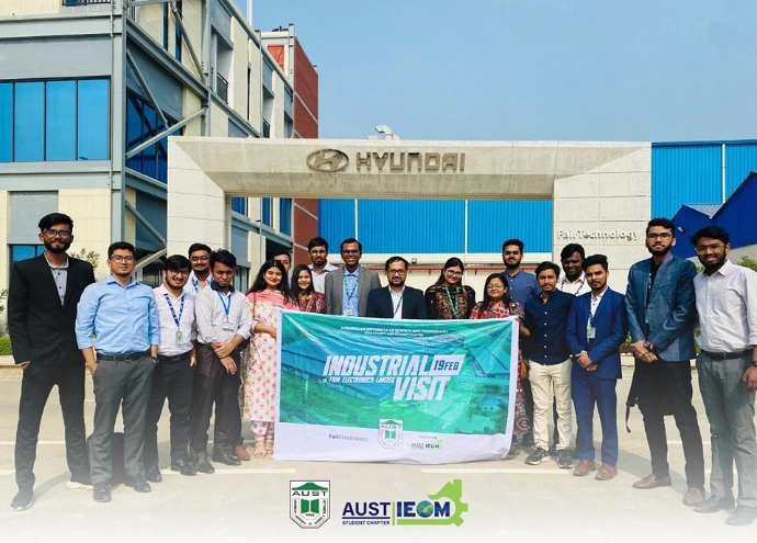 We are thrilled to announce that the panel members of the IEOM Society AUST Student Chapter recently had the golden opportunity to step outside the classroom and onto the factory floor. We conducted an exclusive industrial visit to the Fair Technology-Hyundai facility located at the Bangabandhu Hi-Tech Park in Kaliakoir, Gazipur.